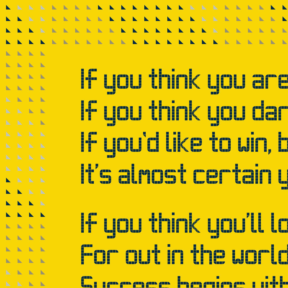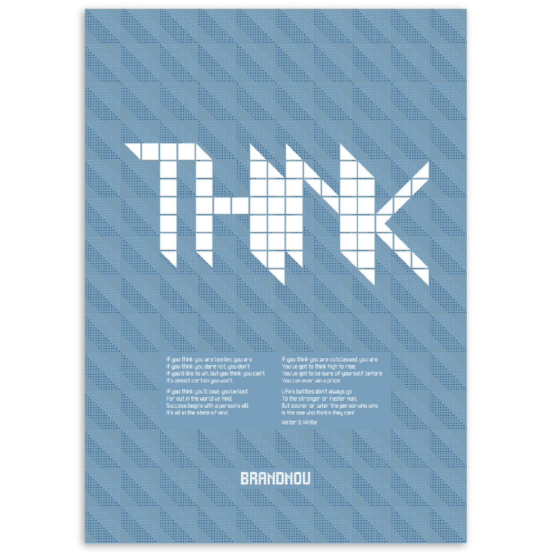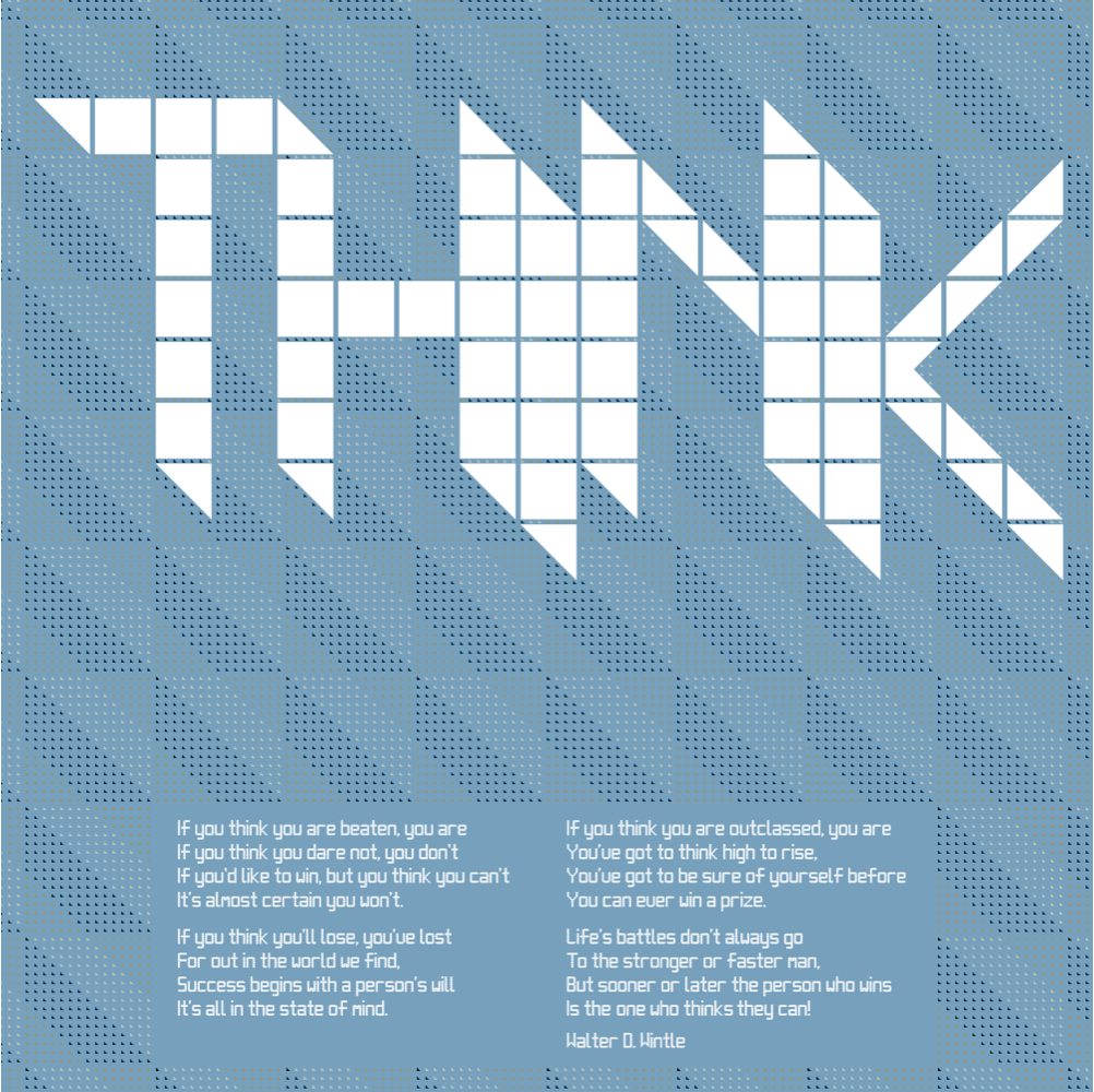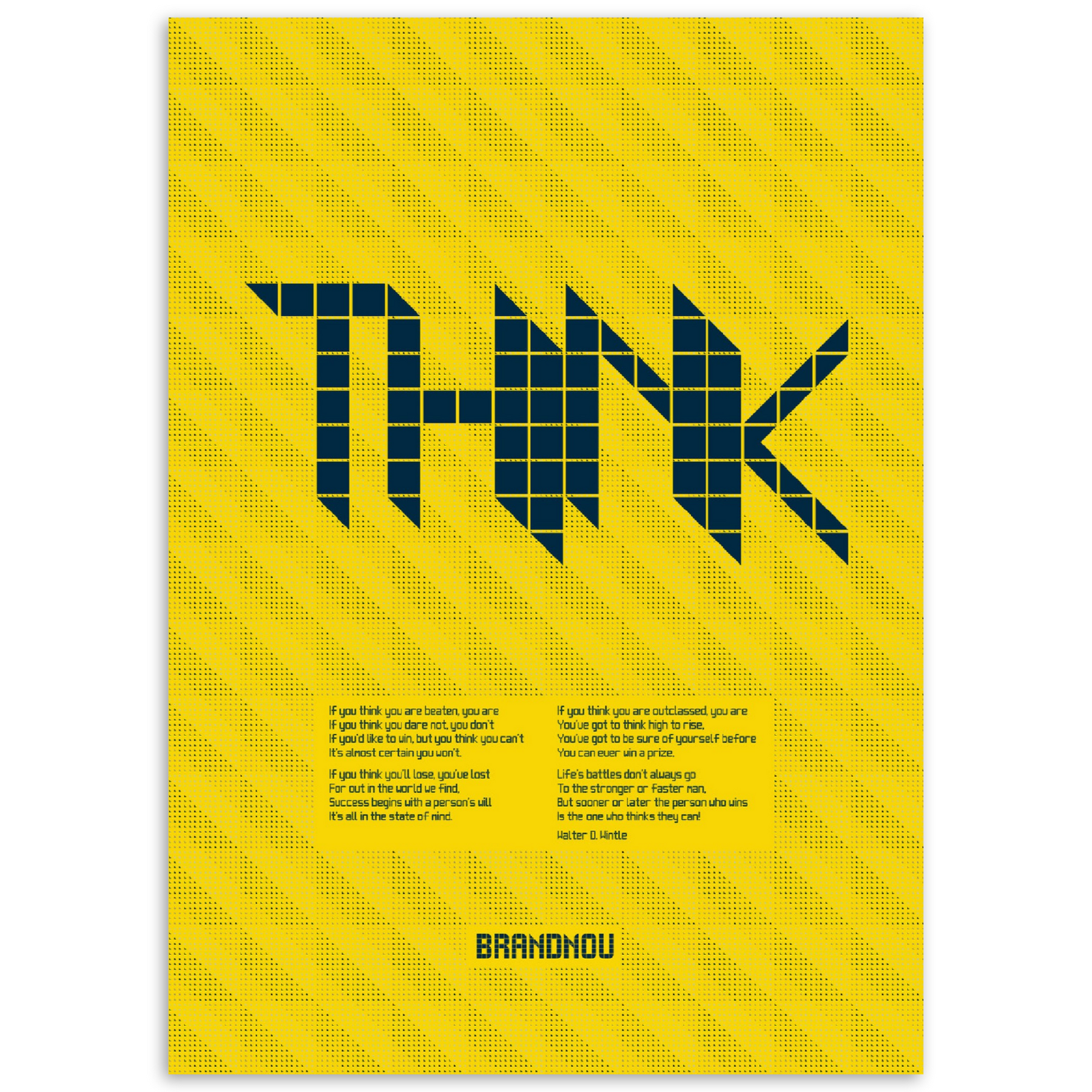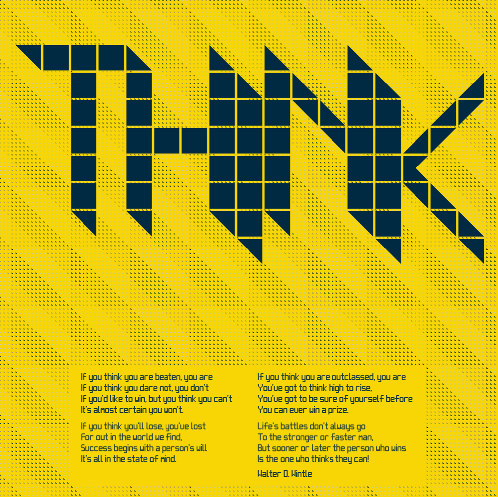Incorporating the classic poem "Thinking" (also known as "The Man Who Thinks He Can") by Walter D. Wintle, this striking poster is available in bold, yet interior-friendly golden yellow or airforce blue.