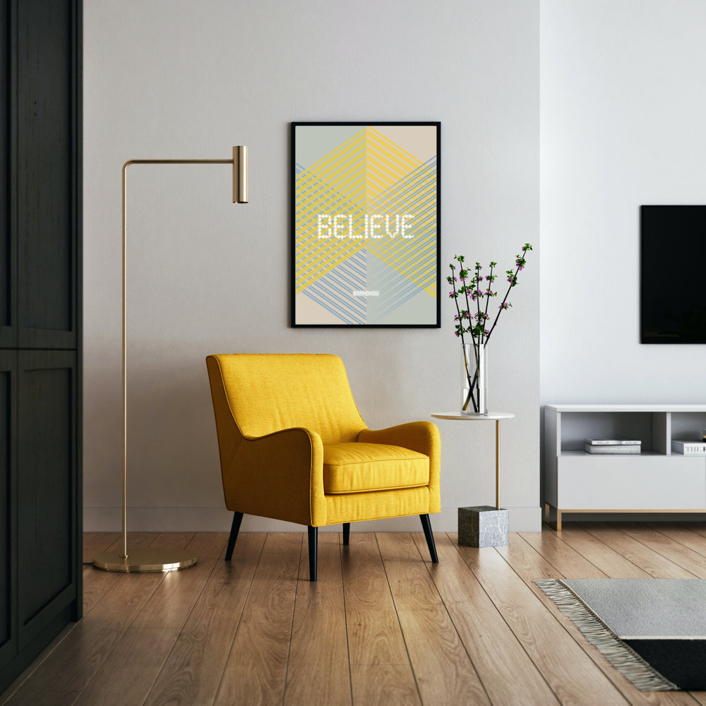 This visually striking poster serves as a stylish and striking call to action, encouraging viewers to embrace self-confidence and trust in their potential. With bold typography and inspiring imagery, it serves as a daily reminder that belief is the foundation for achieving dreams and overcoming obstacles. This simple yet profound message emphasises the transformative power of faith - both in oneself and in the journey ahead.