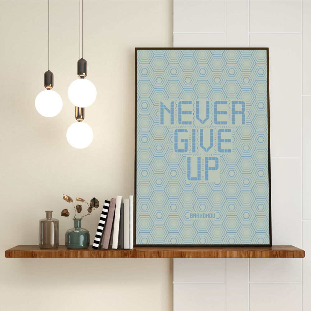 With its simple repetitive motif and positive, affirmative message this understated poster compliments any room in the home.